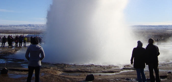Our first stop takes us to Thingvellir National Park where the Icelandic parliament was founded over 1000 years ago. At Thingvellir you will see how the earth is ever so slowly pulling apart along the North-America and Eurasian tectonic plates and you will be able to stand where the Viking settlers stood centuries ago to edict national laws.Next, you will visit the Geysir geothermal area in Haukadalur where you can see geysers, hot springs, steam vents and eerie blue algae. Strokkur is one of the largest and most powerful geysers and erupts almost every 5 minutes.The final stop of the Golden Circle takes you to Gullfoss waterfall, which many consider to be the queen of Icelandic waterfalls, as it is both high and mighty and stumbles dramatically in a deep gorge. We then have a lunch break at Gullfoss Café, before trying out our Superjeep vehicles off road: the ride will take you to the highlands, rough terrain and glacier area of Langjökull (Icelandic for "long glacier"), known to be the second largest ice cap in Iceland (953 km2). You will enjoy the landscape from your Superjeep while occasionally stopping next incredible sights.